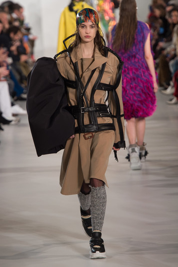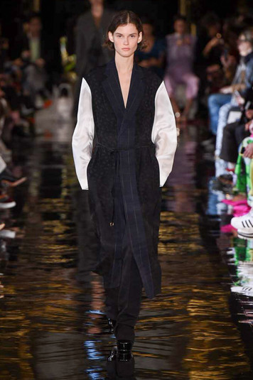Показ Стеллы Маккартни продемонстрировал поддержку знаковой тенденции - любви к кроссовкам. В новой коллекции Стелла отказалась и от токсичного клея, которым обычно скрепляют обувь. Вместо него использовались специальные швы.