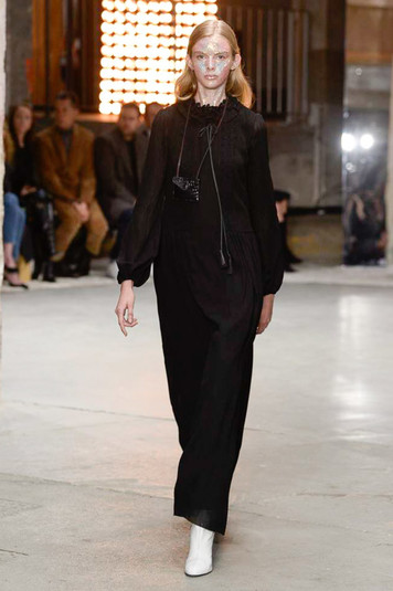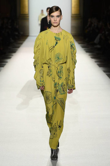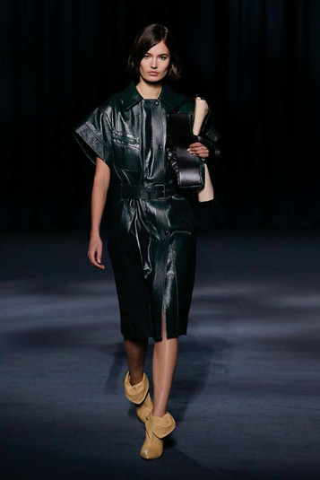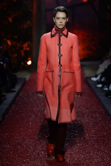 В таинственный сад, драматический и загадочный, попали гости осенне-зимнего шоу Hermes. Главной на подиуме была кожа - из нее были сшиты строгие платья в духе 1940-х, штаны на манер ковбойских, и разнообразная верхняя одежда.