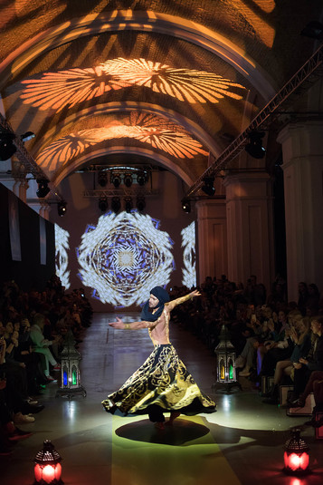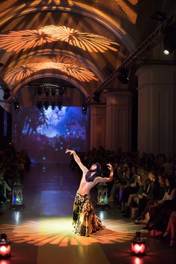 Fashion-дизайнер Andi! окунула всех гостей показа в мир Востока. Все это удалось с помощью восточных ламп, которые украшали зал и видеопроекции пустыни.
