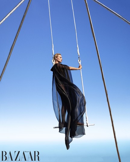 Для съемок 28-летняя актриса перевоплотилась в воздушную гимнастку парящую на подвесных качелях. На безумной высоте актриса умудрилась позировать в платьях от Chanel, Armani Privé и Tom Ford и в украшениях от Tiffany & Co.