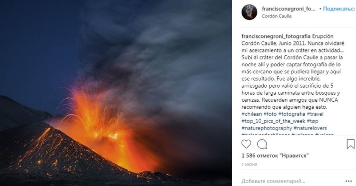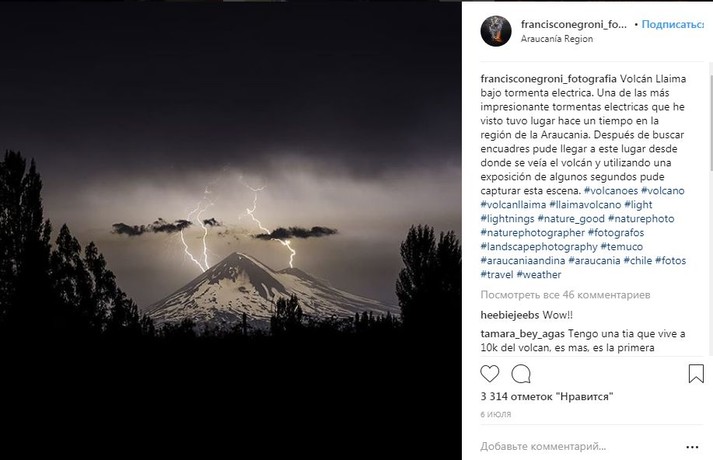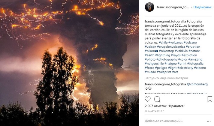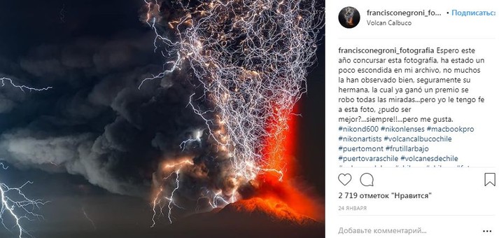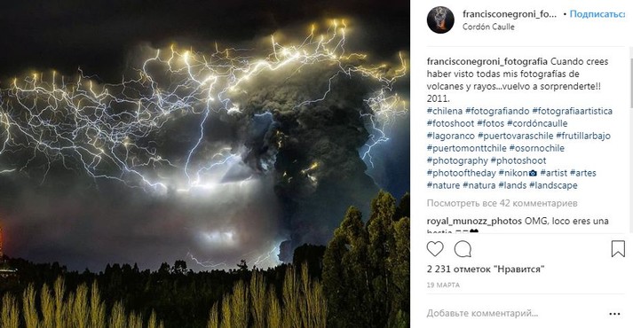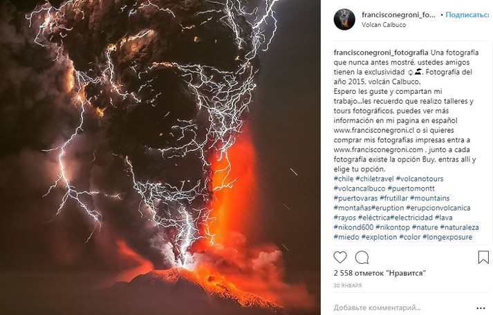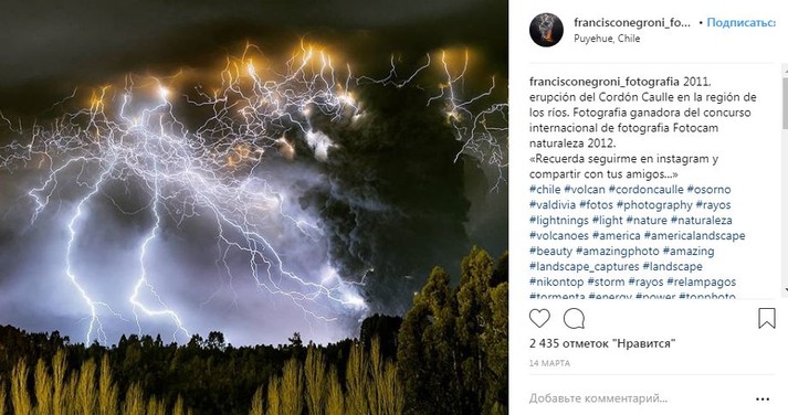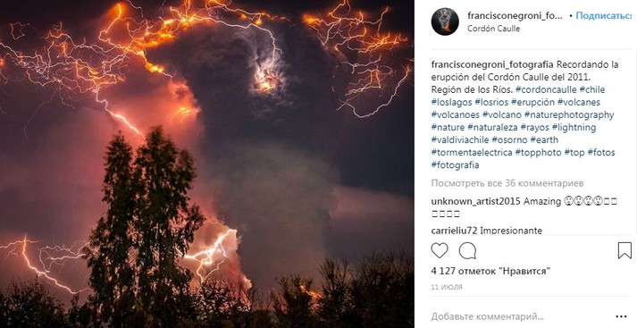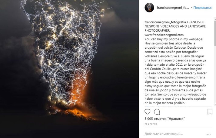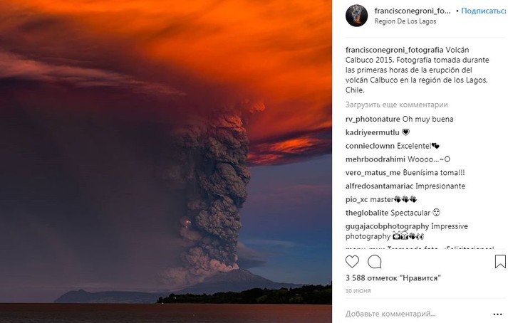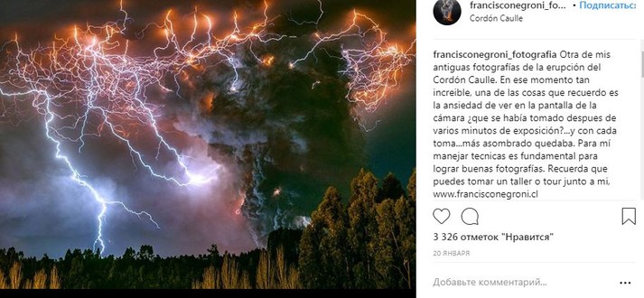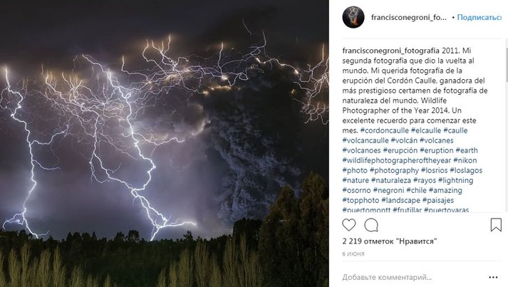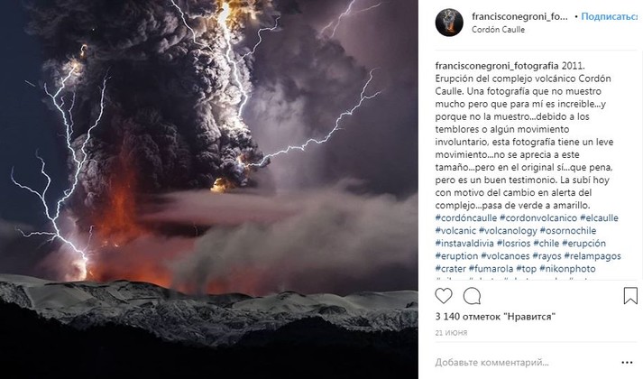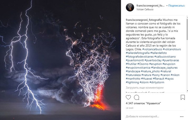 А его фотография извержения чилийского вулкана Пуеуэ не только снискала любовь поклонников творчества фотографа, но и взяла несколько международных премий.
