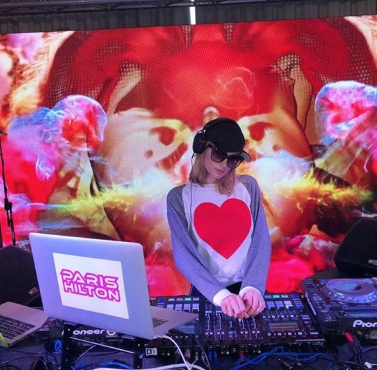 Хилтон проведет в Украине несколько дней. По прибытии во Львов, Хилтон выложила в Instagram живописную панораму города. Также она выложила в Twitter фото собственного DJ-сета. Это выступление характеризовалось организаторами, как «благотворительное». Оно направлено на помощь матерям-одиночкам. Владелец отеля, на открытии которого выступала Хилтон, отметил, что за этот DJ-сет она получит символическое вознаграждение.