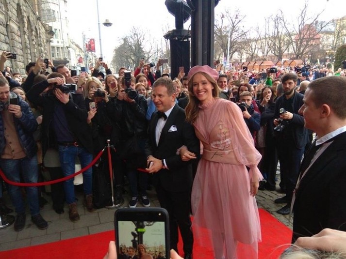 На красной дорожке она появилась в черном кружевном платье в сопровождении жениха - актера Криса Зилки. Последний, кстати, имеет украинские корни, его дед был киевлянином.