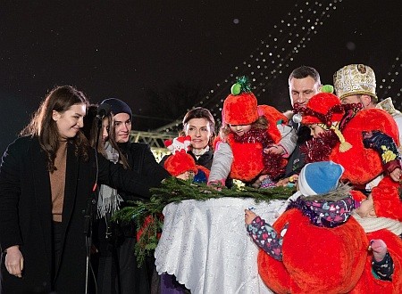 19 декабря, в День святого Николая в Софийской площади в Киеве мэр столицы Виталий Кличко вместе с супругой президента Мариной Порошенко зажгли главную елку страны. Вместе с первой леди было ее трое младших детей.