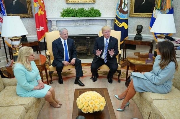 Во время официальной встречи премьер-министра Израиля Биньямина Нетаньяху и президента США Дональда Трампа их жены выбрали наряды одинаковых оттенков. Диалог лидеров проходил в овальном кабинете Белого дома.