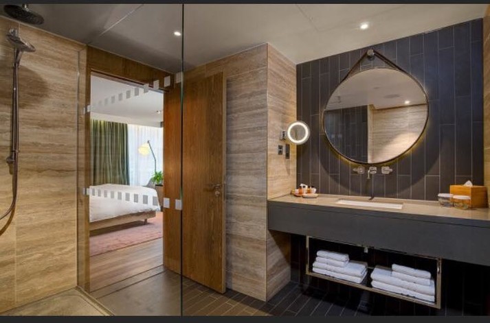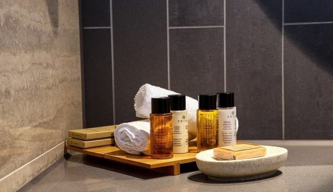 Создатели номера подумали даже о таких мелочах как канцтовары, косметика в ванной комнате и чистящие средства, а также содержимое мини-бара. Все косметические товары, представленные в номере, не тестировались на животных, а в баре лежать только специальные веганские батончики и напитки.