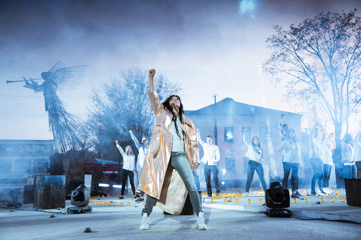 Руслана появилась одетая в золотой плащ, который символизирует солнечный свет и ветер, из которых производится современная чистая энергия. Певица направилась к солнечным часам по так называемой «аллее памяти». Неподалеку от Трубящего ангела, вокруг солнечных часов, выложенных свечами, собрались «тени» тех, чьи жизни унесла страшная Чернобыльская катастрофа.