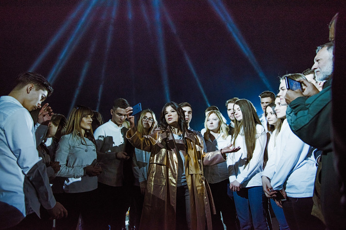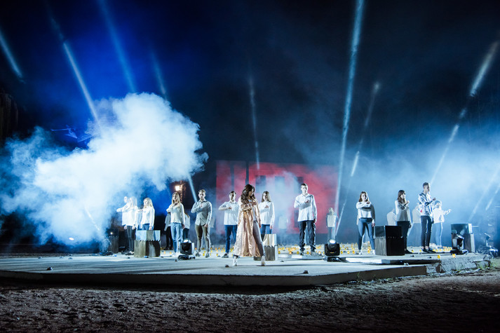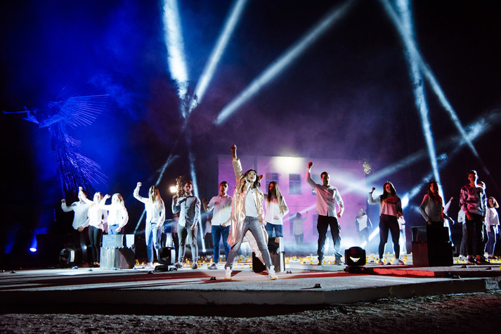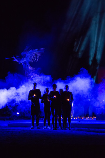 В сердце перформанса был неповторимый голос Русланы, усиленный нежной сопилкой. Подойдя к каждому человеку у круга. А тени после прикосновения певицы постепенно начали исчезать, будто растворялись в сумерках бытия. На их место пришли «светлые» люди, которые олицетворяют новые поколения, что приняли ошибки своих предков и, выучив этот урок, двигаются дальше уже на новой энергии - чистой и светлой.