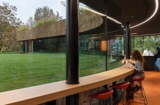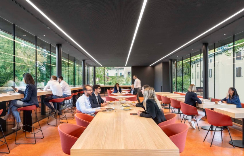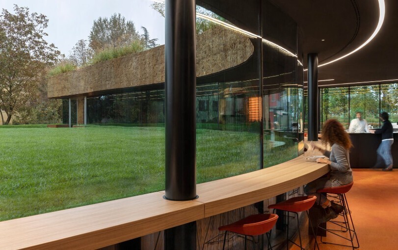 Вдень їдальня обслуговує співробітників Mutti. Вночі там буде ресторан, який вже незабаром відкриють для відвідувачів. Особливістю закладу є те, що він розташований нижче від рівня землі. Його дах наче піднятий з-під землі та підпертий на опорах.