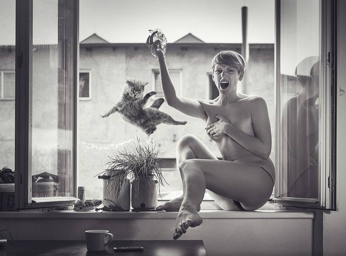 Чешский фотограф, работающий под псевдонимом Fotograf bez talentu, создал серию пикантных и в то же время забавных чёрно-белых снимков под названием «Неожиданный визит».