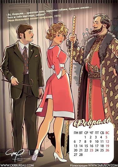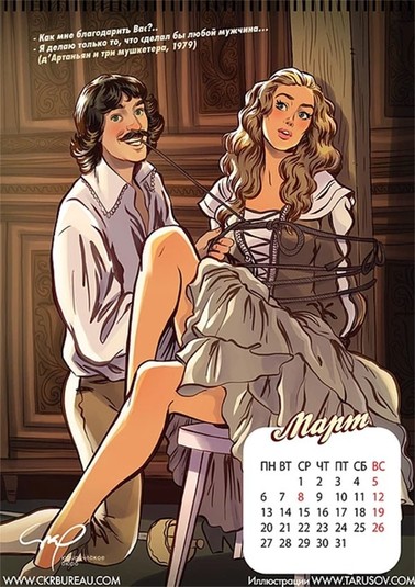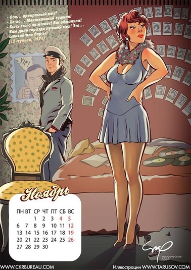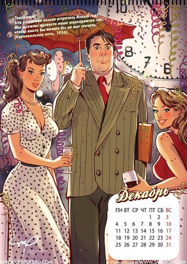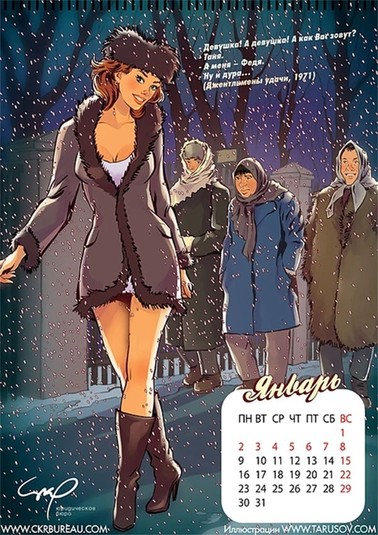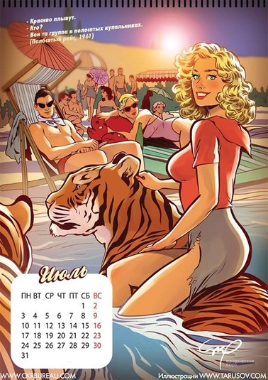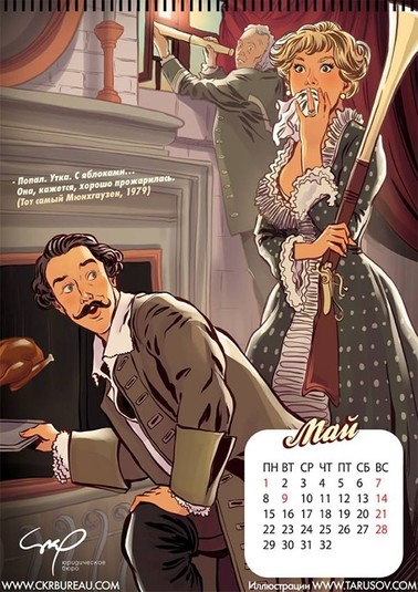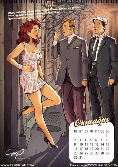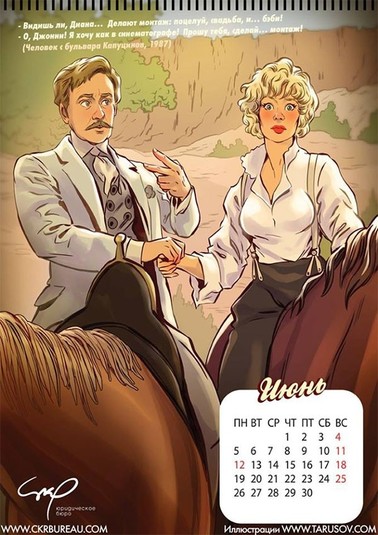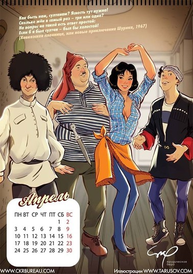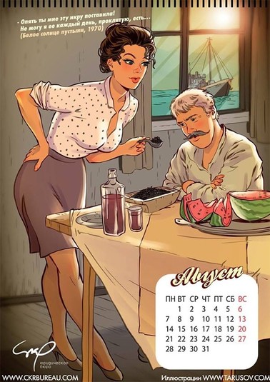 На этот раз Тарусов создал «Кинематографический календарь», в котором знакомые персонажи из советского кино представлены в неожиданно раскрепощенных образах.