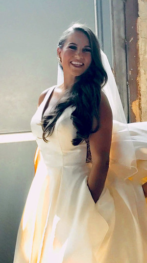 Фотография свадебного платья британки восхитила пользователей соцсетей. На снимке, который опубликовала Эстер Кезиа Торп, ее подруга стоит, сунув руки в карманы традиционного для невесты наряда.