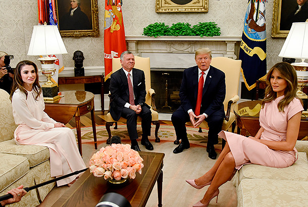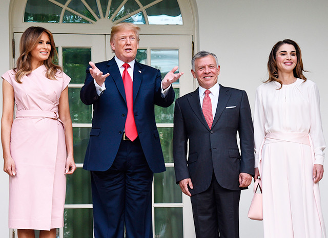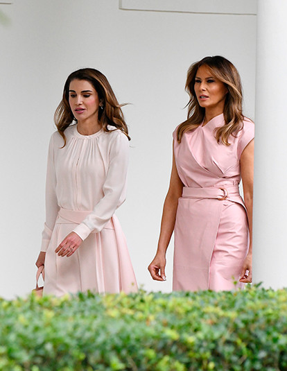 Королева Рания и первая леди США Мелания Трамп восхитили редакторов модных глянцев нарядами, которые выбрали для встречи.
