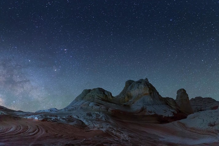 Ему удалось зафиксировать русло небольшой речки, когда-то протекавшей в национальном парке Долина огня, штат Невада, млечный путь над каменистыми землями пустыни Уайт Покет в Аризоне, белоснежные песчаные дюны, которыми славится национальный памятник парк Белых песков в Аламогордо, Нью-Мексико и небо со дна каньона Лоуэр Антилоп в одной из пустынь Аризоны.