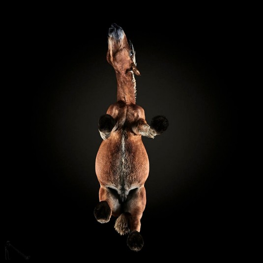 «Я решил, что стану первым человеком, сфотографировавшим стоящую лошадь снизу. Когда я начинал организовывать фотосессию, то понимал, что мне нужно найти стекло, способное выдержать 600-килограмовое животное, выкопать 3-метровую траншею в земле, поместить фотокамеру под стеклом и сделать снимки». Фотограф даже раздобыл резиновые подковы, чтобы защитить стекло от царапин.