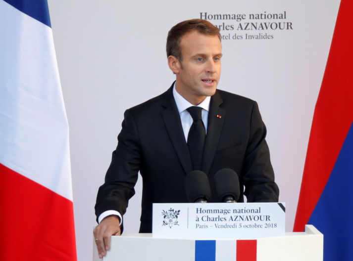 — Élysée (@Elysee) 5 жовтня 2018 р.Прямую трансляцию мероприятия велит все центральные французские телеканалы. В честь Азнавура прозвучал сначала гимн Армении, а затем «Марсельеза» - государственный гимн Франции. После этого, Макрон и Пашинян выступили с речью, где высказали слова благодарности за вклад Азнавура в историю и культуру обеих государств.