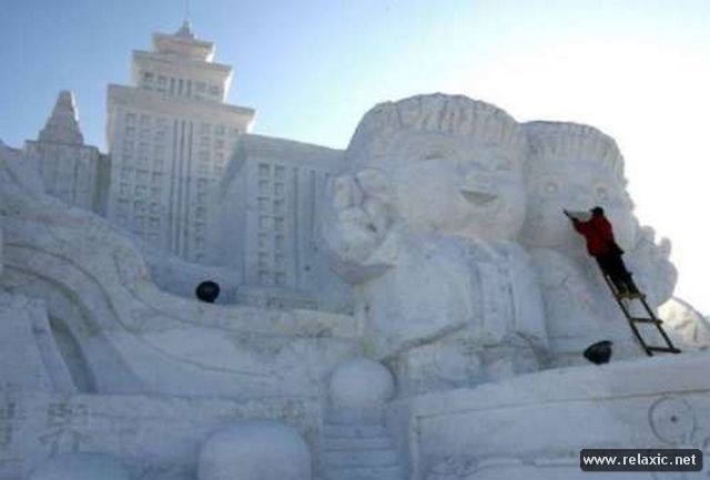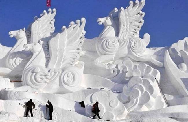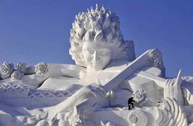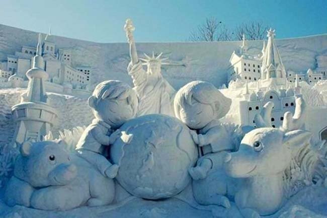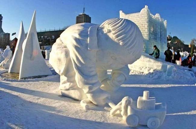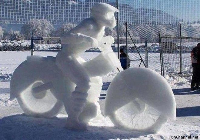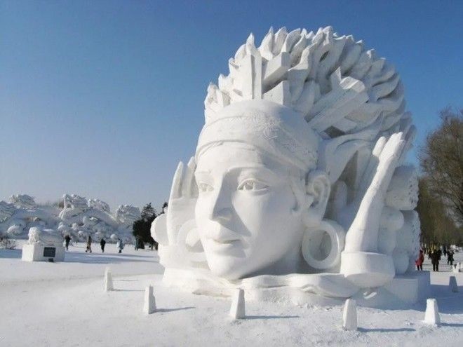 Во многих странах проводятся зимние фестивали, на которых собираются профессиональные скульпторы для создания оригинальных статуй из снега. Умельцы работают с этим холодным материалом настолько же успешно, как и с традиционными глиной или пластилином. Ради своих шедевров они готовы проводить десятки часов на морозе и многократно переделывать разваливающиеся крохкие композиции.