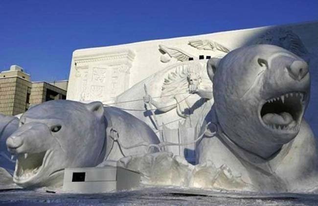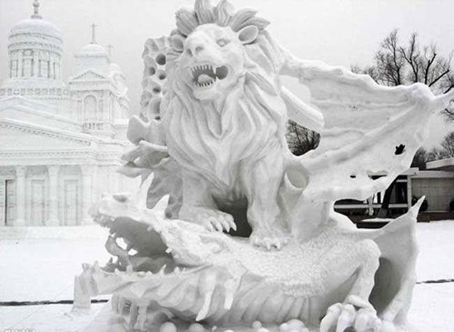«Главком» составил подборку наиболее оригинальных изваяний из снега и льда, над которыми трудились настоящие художники. Каждую из этих работ хотелось бы заморозить навсегда. Однако все они просуществовали не более недели.