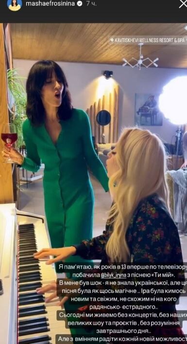 Телеведуча Єфросиніна прилетіла спеціально до Грузії, де зараз перебуває Полякова. Українські зірки зустрілися в одній з кав’ярень. Пізніше Полякова поділилася шанувальниками у соцмережі знімком, на якому вони з Єфросиніною співають знамениту пісню Ірини Білик «Ти мій».