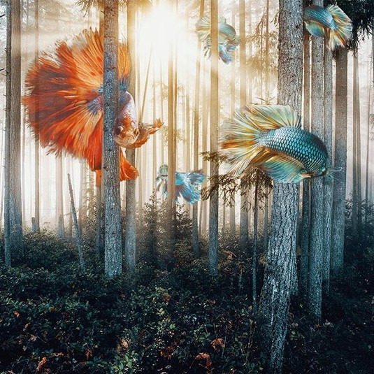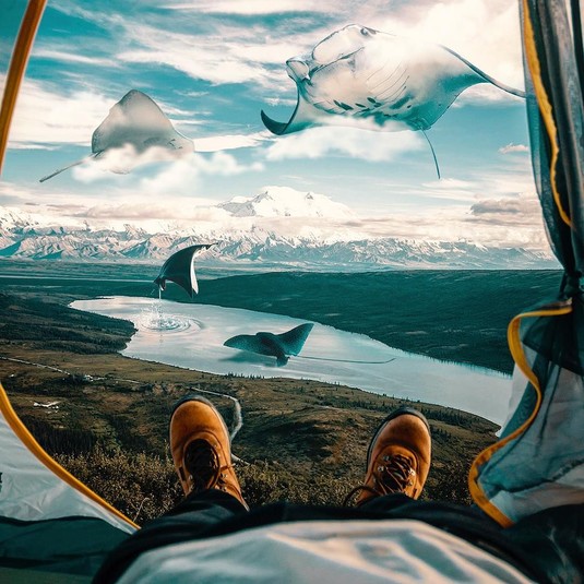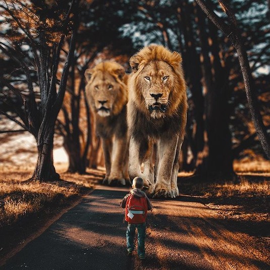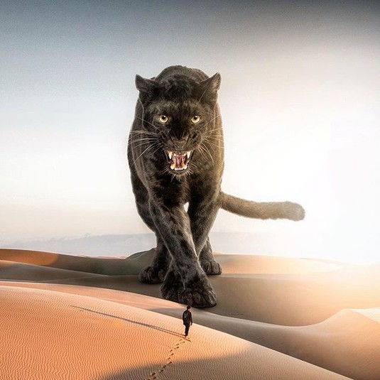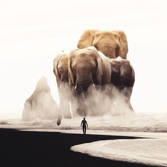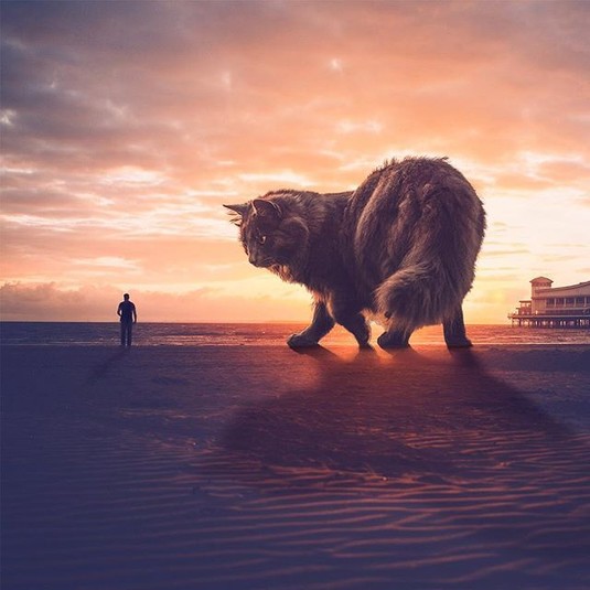 Многие из нас слышали о гигантских людях и чудовищах из сказок. А торонтский фотограф Мани с помощью фотошопа создает сюрреалистический мир, где по земле бродят огромные животные.