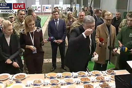 Президент Пётр Порошенко продигустировал новый солдатский паёк, назвав его «новым поколением пищевого обеспечения». Это случилось в ходе осмотра общежитий Вооружённых сил Украины, который проходил 12 октября.
