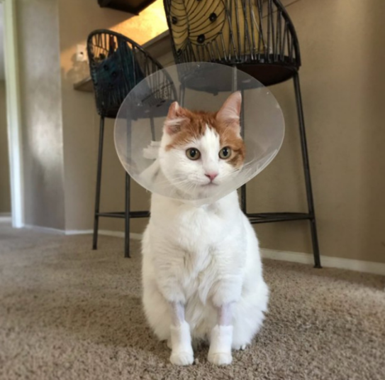 Пользователь Twitter под ником trashlyn_ поделилась забавной фотографией кота, недавно пережившего хирургическую операцию, перед которой он лишился шерсти на лапах. Пост девушки стал вирусным, набрав более 470 тысяч лайков, и побудил других людей опубликовать снимки своих питомцев, которые также, побывав у хирургов, стали обладателями нелепых стрижек.