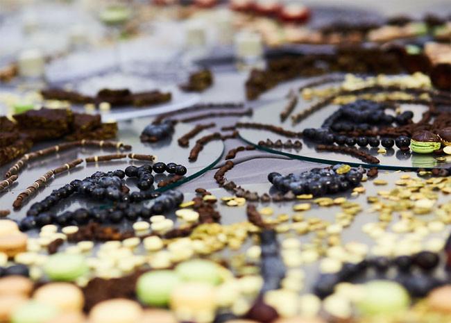 Пора посмотреть на еду под новым углом: огромные картины из продуктов, которые создают литовские художницы Эмилия Винжановайте и Йолита Ваиткуте, нужно рассматривать с определенного ракурса.