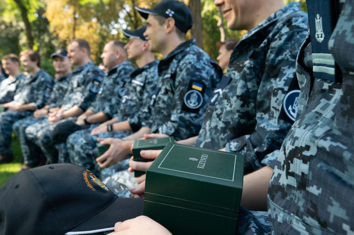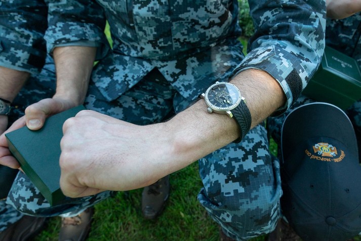 Во время встречи с моряками Владимир Зеленский вручил ребятам подарки - специальные президентские часы.