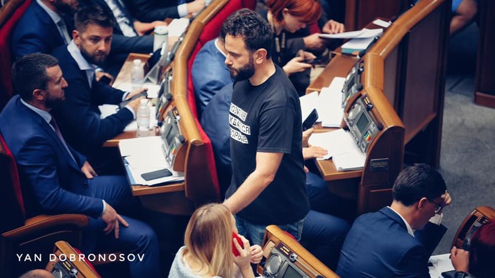 Нардеп пришел в Раду в футболке с надписью «Позитив рождается в борьбе».