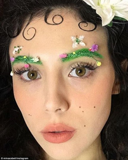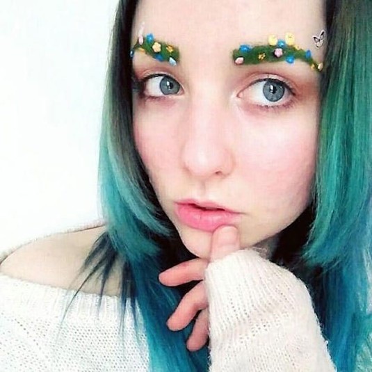 В этом году особенно актуальными были тренды на странные брови. Например, канадская бьюти-блогерша Тейлор Р. раскрасила брови зеленым, слегка их растрепала и посадила на две образовавшиеся лужайки немного цветов. И добавила бабочек. К своим фото она приложила хэштег #GardenEyebrows.