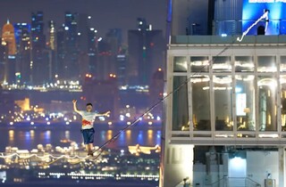 Ця прогулянка стала не лише найдовшою на одній будівлі, а й найвищою на сьогоднішній день у міському середовищі. Вона пройшла на висоті 185 метрів – по канату завтовшки всього 2,5 сантиметра.