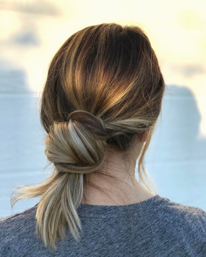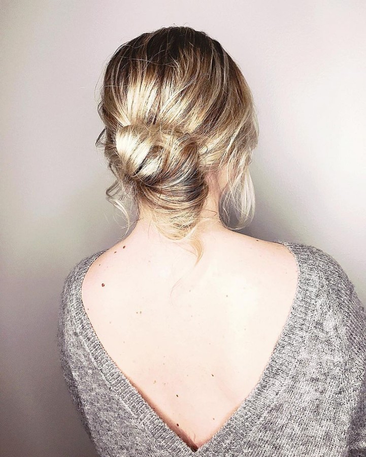 Это разновидность небрежной французской романтичности. Для создания нужно лишь несколько минут. Прическа подходит для любого типа волос.