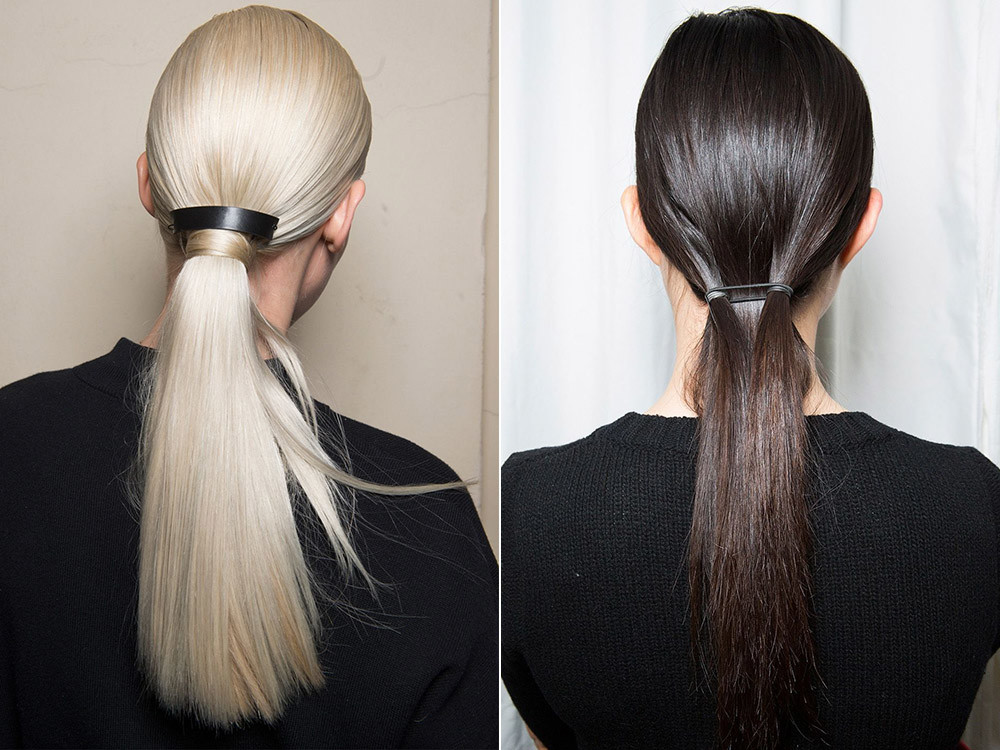 Сейчас он должен располагаться высоко на макушке и быть слегка растрепанным. А вот хвост, наоборот, нужно затягивать как можно ниже и делать идеально гладким.