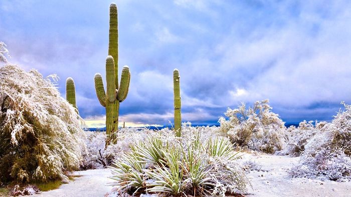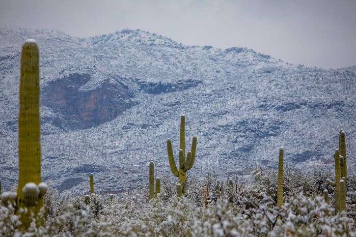 Даже пустыня Сонора укрылась снежным покрывалом.