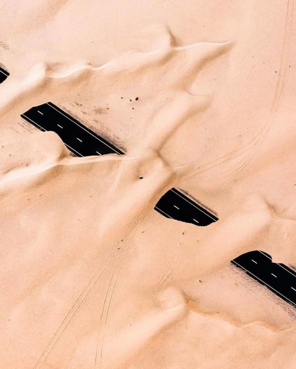 Австралийский дизайнер и пейзажный фотограф Ириней Херек сделал серию снимков Объединенных Арабских Эмиратов с воздуха, наглядно показав, что не всегда человек способен выиграть эту битву с природой.