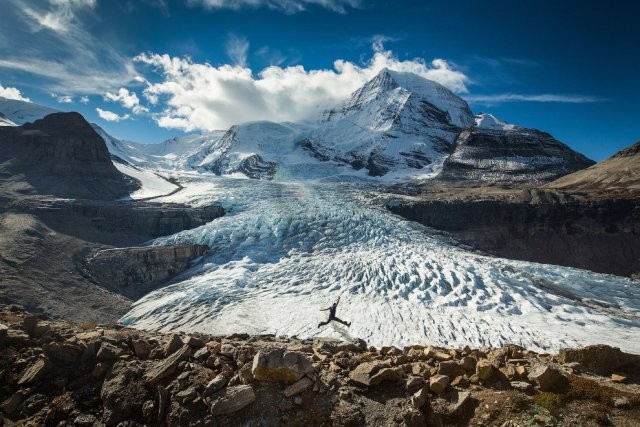 Творческий охотник сфотографировал себя во время похода по ледниковому покрову Гренландии, пересекая Северный полярный круг, стоя в пустыне Гоби под Млечным путем, а совсем недавно - около водопада ВАПТ в Национальном парке Йохо (Yoho National Park).