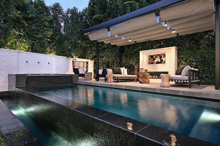 Особняк занимает 567 квадратных метров. Здесь пять спален, семь ванных комнат, а также домашняя библиотека и кинотеатр. На заднем дворе, как и полагается в Голливуде, есть бассейн с зоной для отдыха и барбекю.