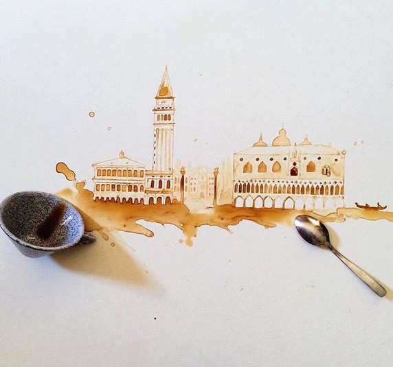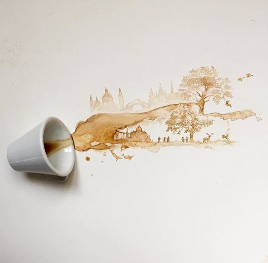 27-летняя итальянская художница Джулия Бернаделли никогда не переживает по поводу опрокинутой на стол чашки кофе, ведь ей удается превращать эту маленькую неприятность в самое настоящее произведение искусства.