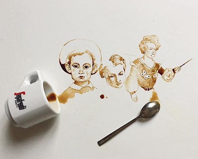 Пятна кофе как искусство: впечатляющие рисунки Джулии Бернаделлы