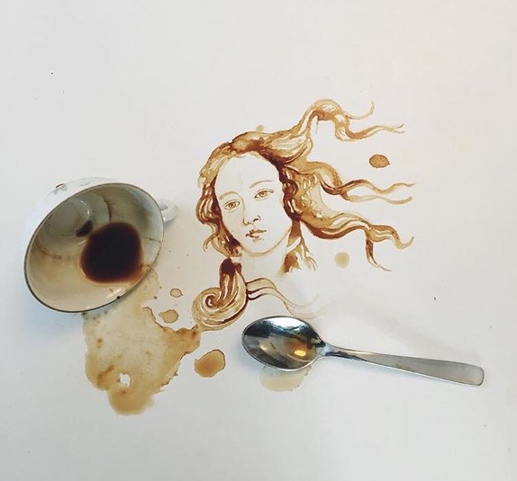 Итальянская художница создает из разлитого кофе целый мир, полный разнообразных персонажей, сюжетов и историй. Она рисует оригинальные изображения и копии известных картин.