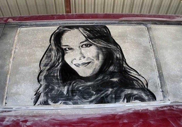 Пыльная работа: художник пишет крутые картины на грязных стеклах машин