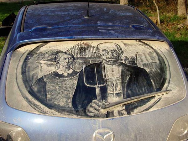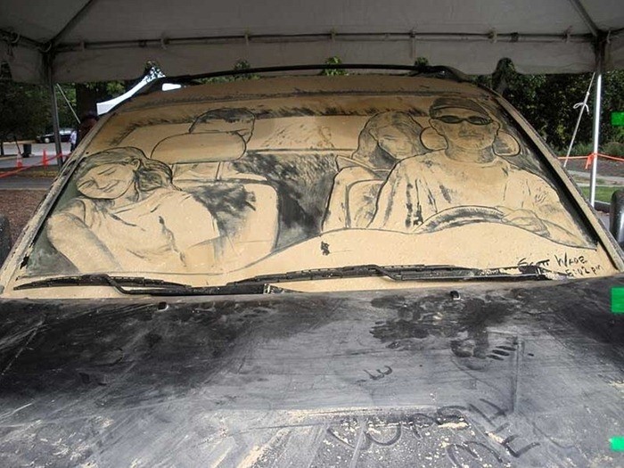 Наоборот, будь его воля, все автомойки остались бы без работы. Измазанные грязью и пылью стекла Скотт использует в качестве холстов. Новое направление в искусстве!