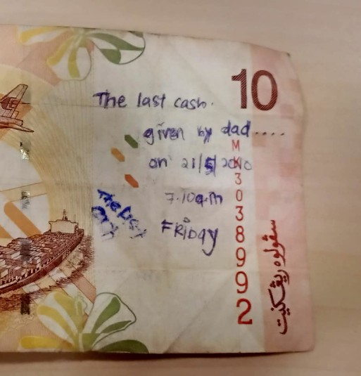 Ее внимание привлекла трогательная надпись на банкноте: «Это последняя купюра, которую вручил мне отец. 21 мая 2010 года, в пятницу, 7:10 утра. Я люблю тебя, папа». Эзани решила во что бы то ни стало вернуть памятную вещь настоящему хозяину.