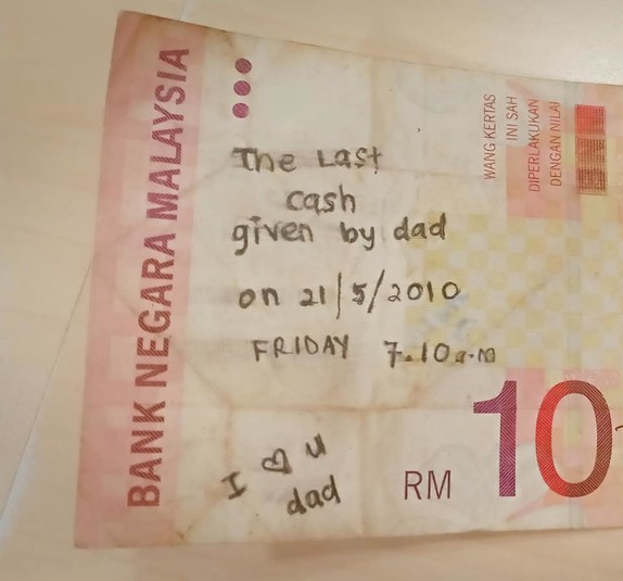 Каково же было удивление Есудас, когда она увидела пост Эзани, разыскивавшую владельца тех самых 10 ринггитов. Есудас связалась с банковской работницей, забрала купюру и написала пост в Facebook. В публикации она поблагодарила Эзани и призналась, что до сих пор скучает по отцу.