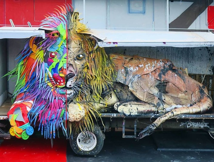 Португальский художник Bordalo II использует отходы для создания своих произведений