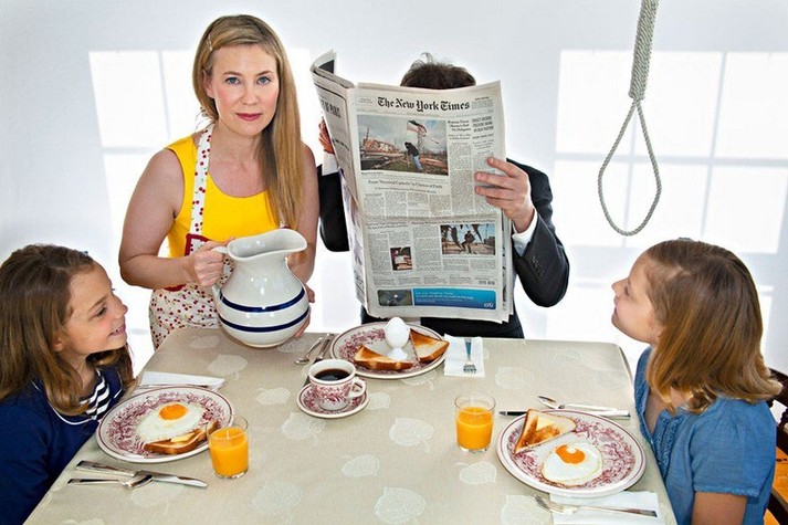 Художница, фотограф, жена и мать двоих детей по-своему представила концепцию традиционной семейной фотографии при помощи серии скандального вида снимков под названием «Радости семейной жизни» (Domestic Bliss).