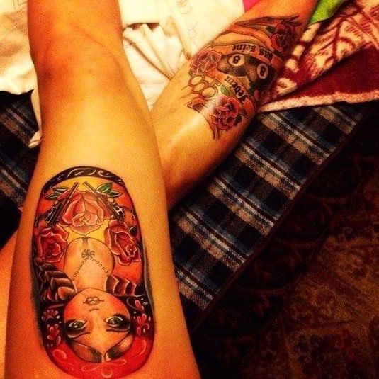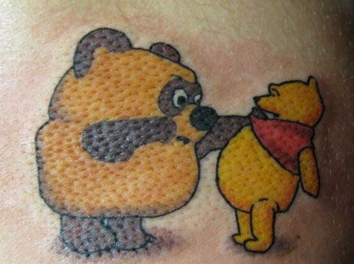 Ну вот скажите, какой иностранец поймет истинную суть этих персонажей? Никакой! А потому эти люди с недоумением, а порой и с изумлением смотрят на россиян, которые отважились сделать себе подобные, «чисто русские» татуировки. И если русская матрешка еще хоть как-то знакома некоторым иностранцам, то татуировка, на которой «какой-то странный медведь избивает Винни-Пуха», вряд ли покажется им понятной. Эти чернильные рисунки на теле поймут и одобрят только истинные «братья славяне».