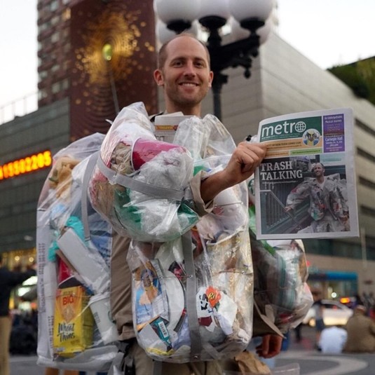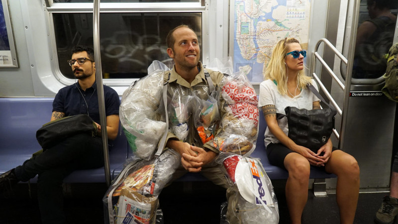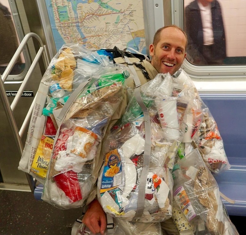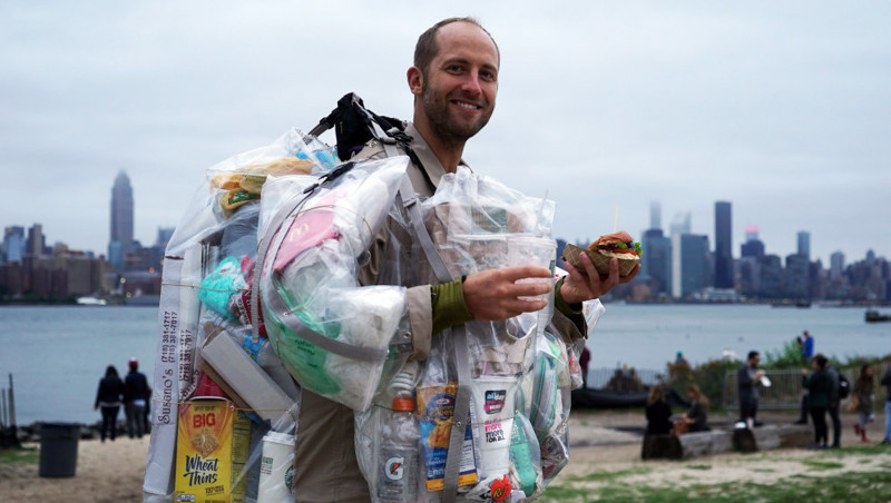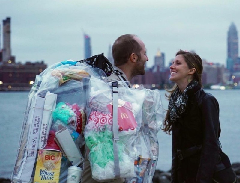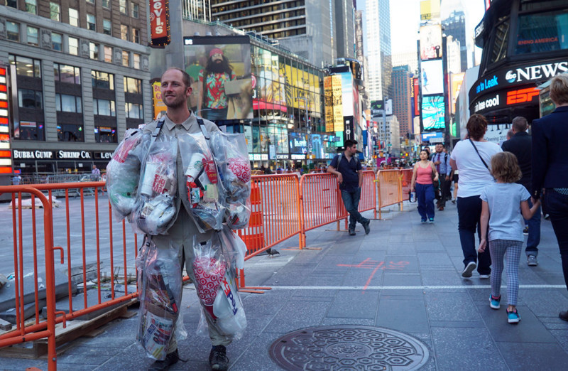 Разгуливая по улицам Нью-Йорка: американец создает мусор и носит его на себе