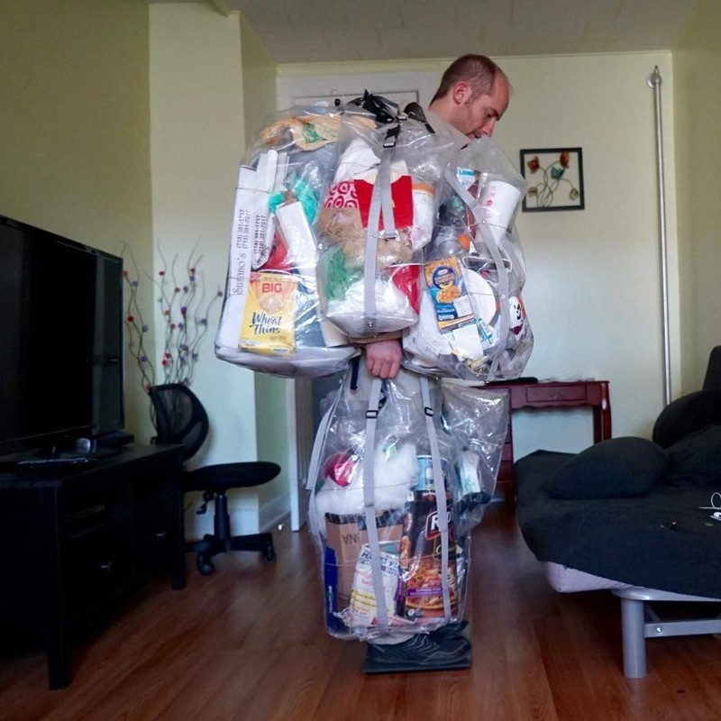 По его мнению, мусор выходит из-под контроля и тянет свои щупальца к горлу человечества, поэтому он решил привлечь внимание к проблеме довольно радикальным образом — не выбрасывать мусор, который он сам же и создает, а складировать его в специальные мешки, прикрепленные к одежде.