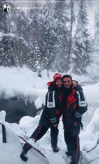 А вот Влад Топалов опубликовал не только свою собственную фотографию с отдыха, но и первое совместное видео с Тодоренко. На видео пара, взявшись за руки, падают в сугроб снега.